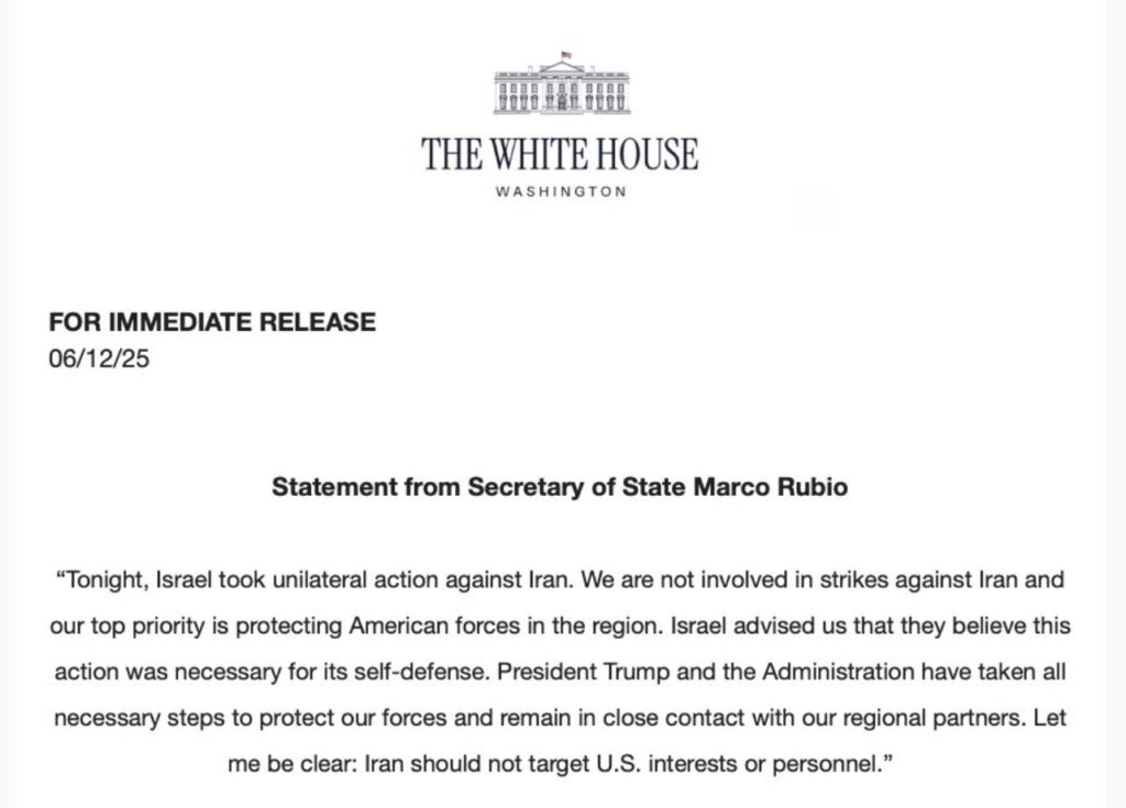 Por su parte, Estados Unidos ha emitido un comunicado en el que niega estar detrás de los ataques a Irán, «nosotros no estamos envueltos en los ataques contra Israel, nuestra máxima prioridad es protejer las fuerzas americanas en la región», en declaración del Secretario de Estado, Marco Rubio.